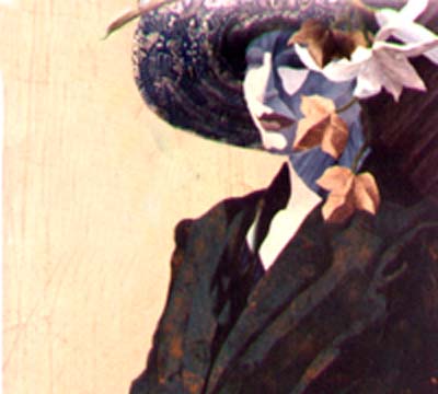 Artist�s Statement The constant refinement of my drawing skills is the cornerstone of my work Grace of movement, compositon and overall asthetics is what my art is about. My medium is paper. When I look at papers whether in a magazine, wrapping papers or books I become inspired to created images from what I see the paper can be. I started out painting and drawing. I was interested in exploring the use of planes and shape to describe form. I was also collecting a variety of papers. Then, while at the L.A. County Museum I saw the collage cut outs called "Jazz" by Henri Matisse. It was then that it occurred to me that by specifically cutting my papers, I could create the form. At first my pieces were flat and two dimensional. But when I introduced a middle or third tone my images sprung to life with depth and dimension. Currently I work on wood surfaces, preferably old doors. Since my work is so protected by the finishing, the viewer is invited to feel the surface. I want to speak to the view not just through sight but tactally. | ||